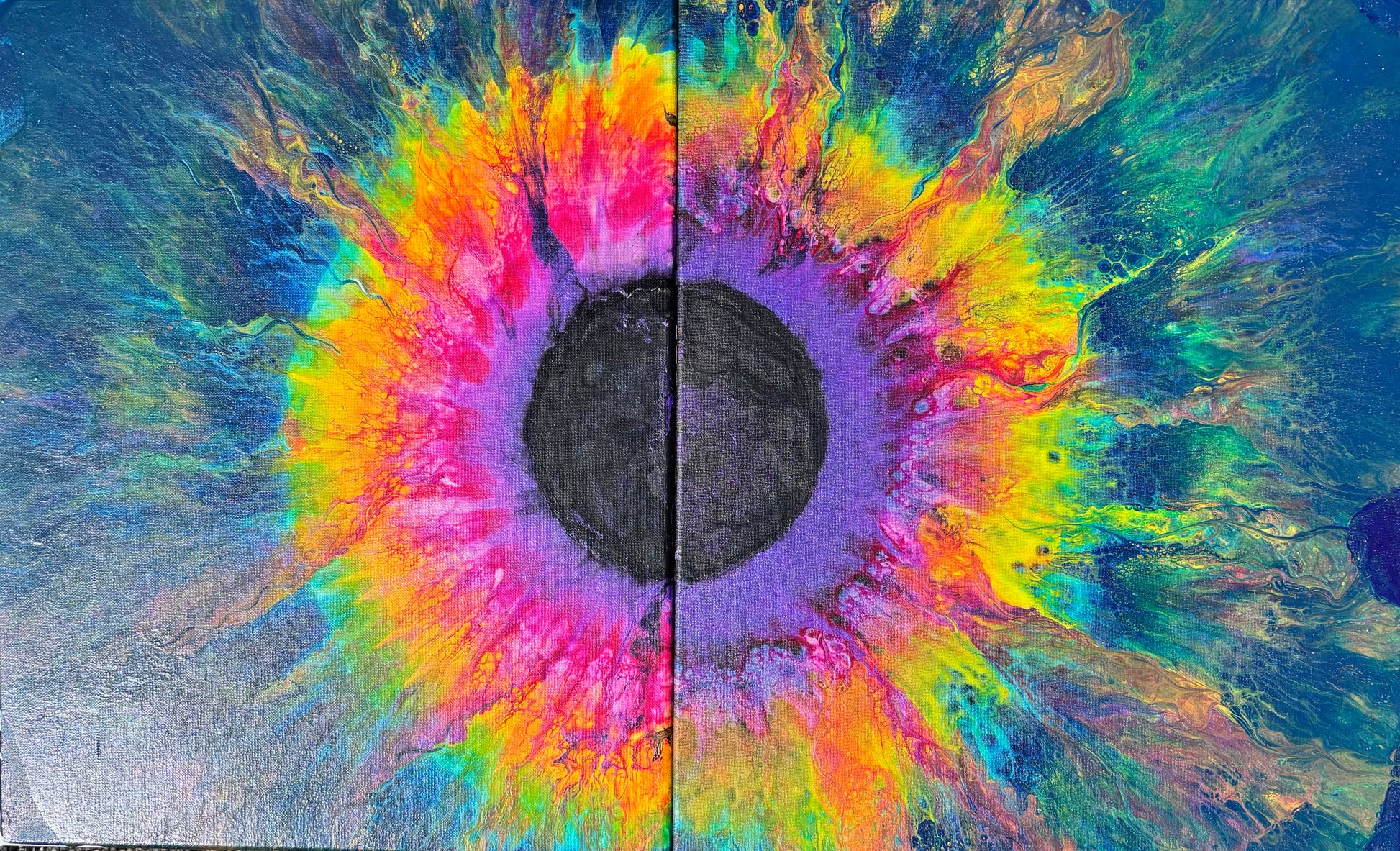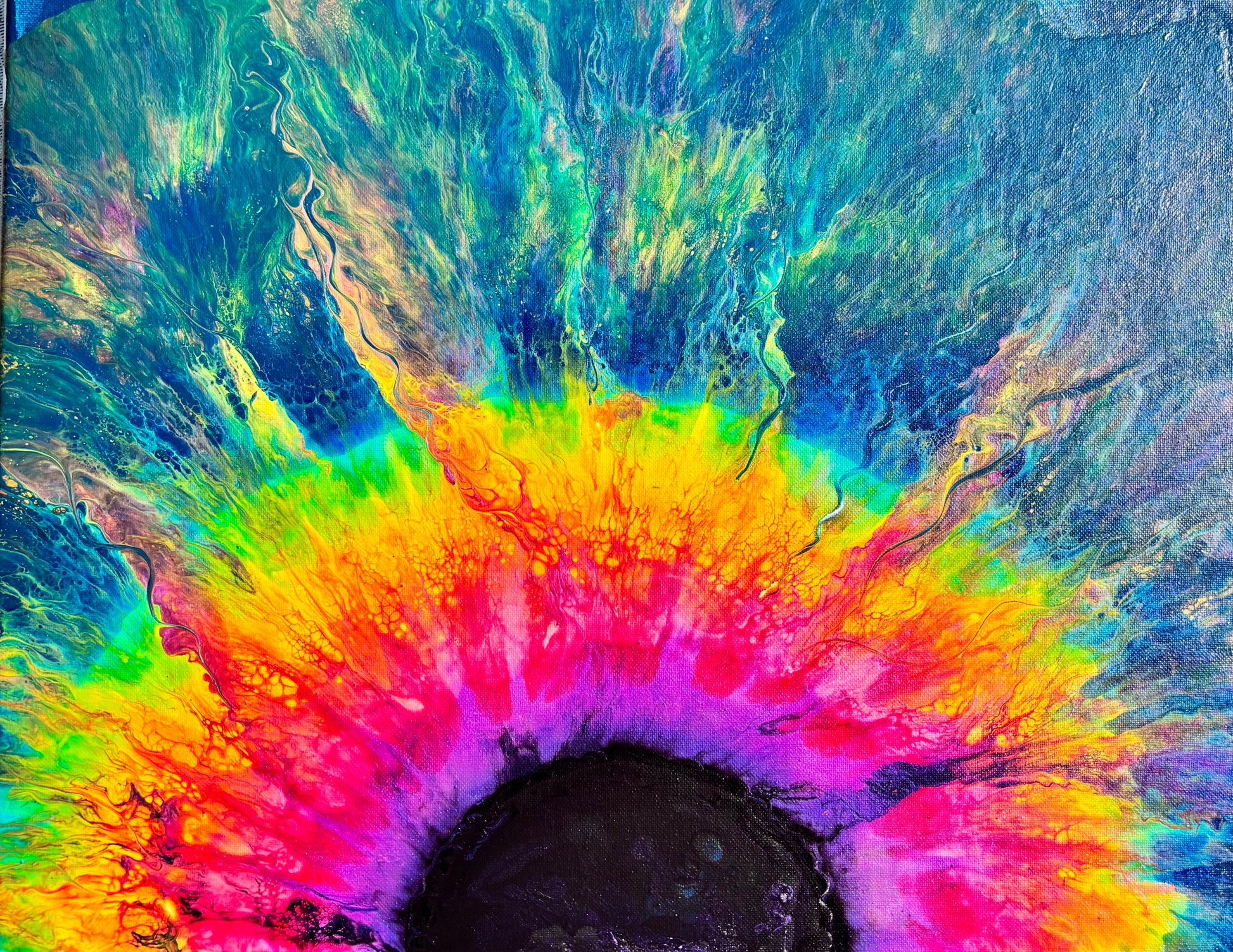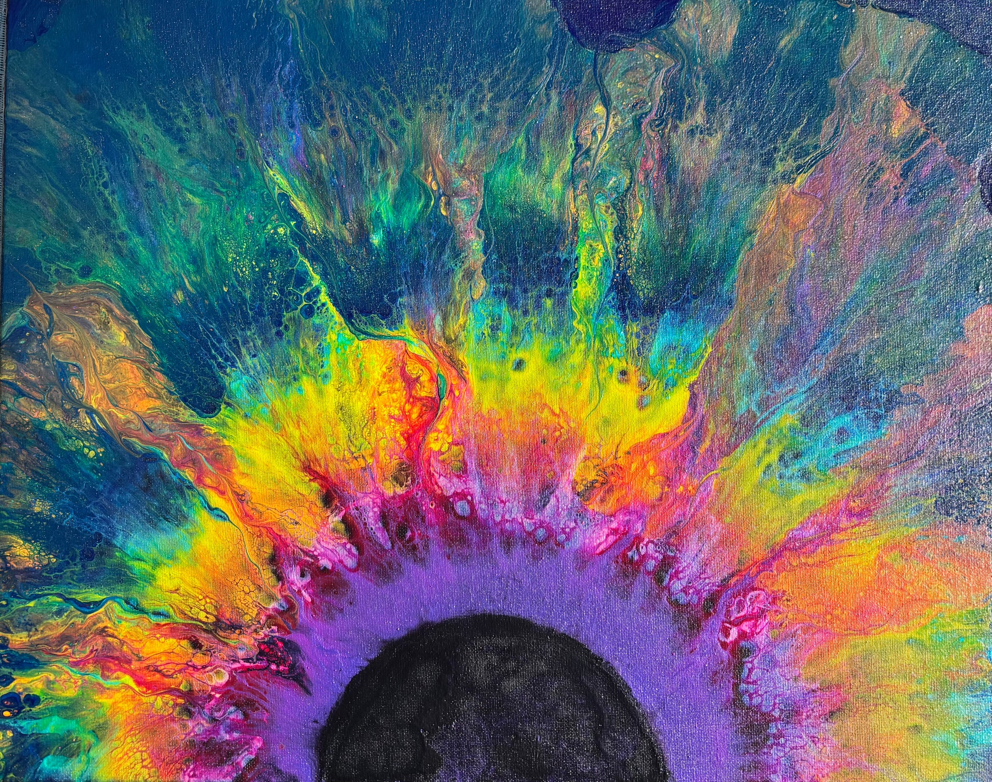 Fluorescent acrylic pigments, assorted acrylic paints, PVC, Gloss medium, gloss varnish, silicone